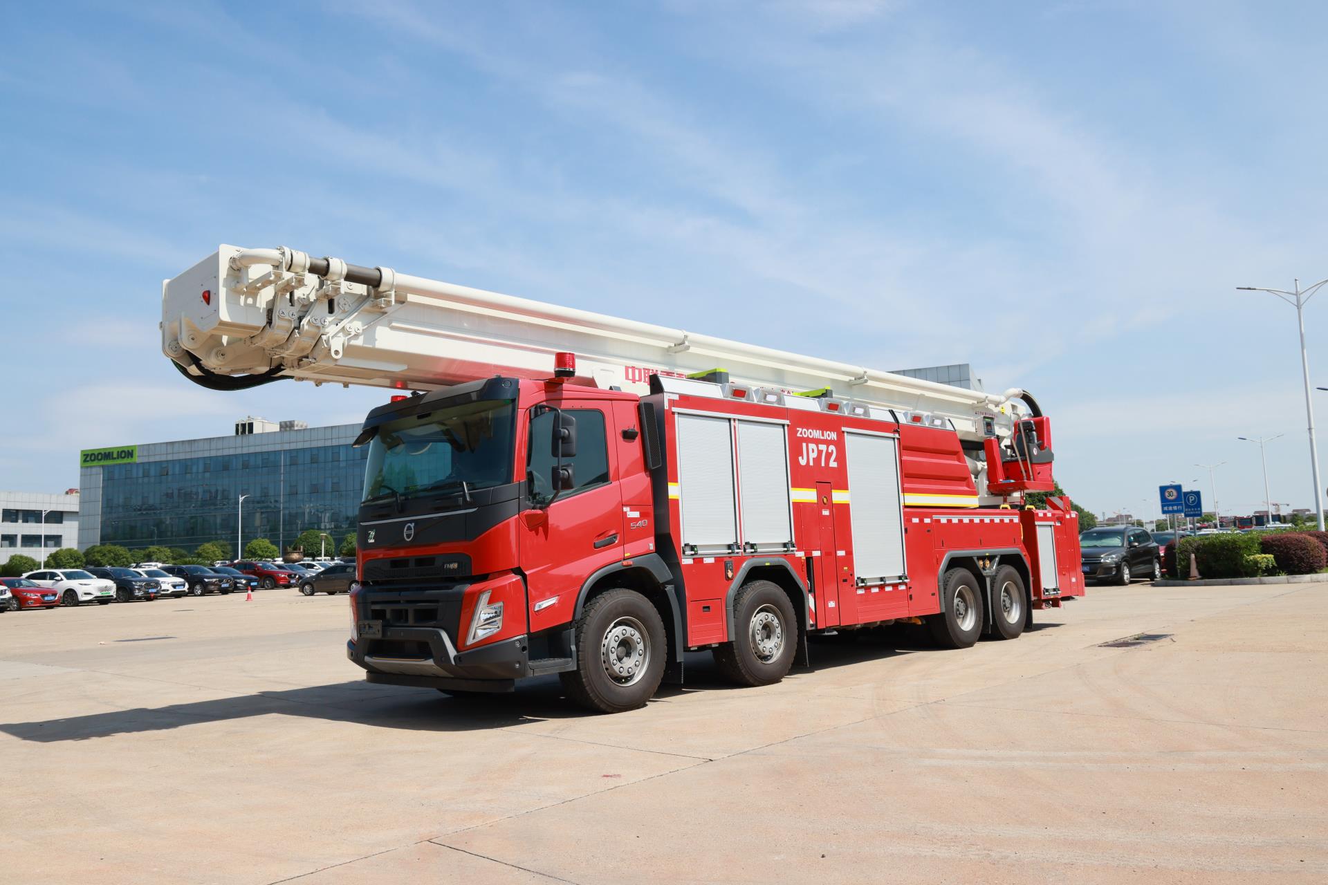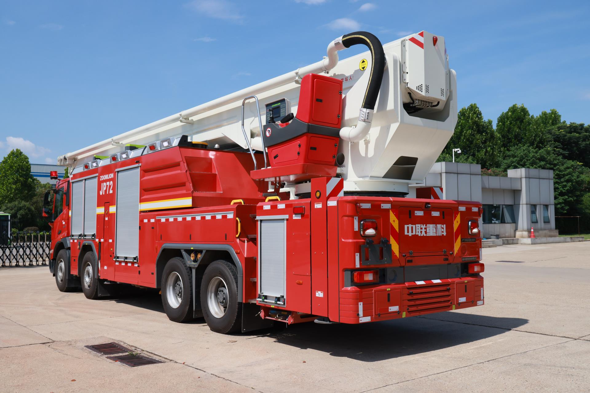 中联牌JP72型举高喷射消防车,具备强大的灭火功能,整车性能优越,快速高效,操作性、安全性及智能化控制水平处于国内先进水平。车辆采用轻量化四节伸缩主臂+三节侧置伸缩曲臂结构,兼顾大高度、大幅度、大流量高空灭火作业,可应对各类复杂环境灭火救援,适用于城镇、港口、工矿企业高层建筑以及石油、化工、油罐、仓库等大型建筑火灾扑救。