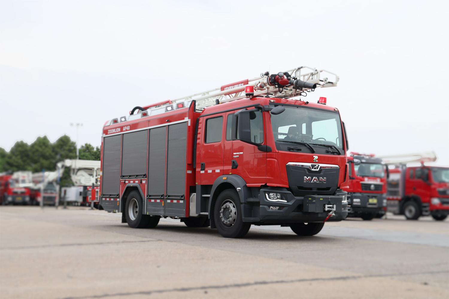 中联重科全新多功能主战消防车,结合消防实战需求设计而成,具备多项实用消费与救援功能。整车机动灵活,搭载压缩空气泡沫系统和环泵式泡沫系统,顶端带有15米遥控桁架式梯架,攀爬性能安全可靠,集成电动水炮、外供水口、旋转照明灯、玻璃破拆钩、起重吊钩等多项功能;车辆采用全铝合金车身,器材空间容量大,是城市应急救援消防队与企业专职消防单位必备首选灭火利器。