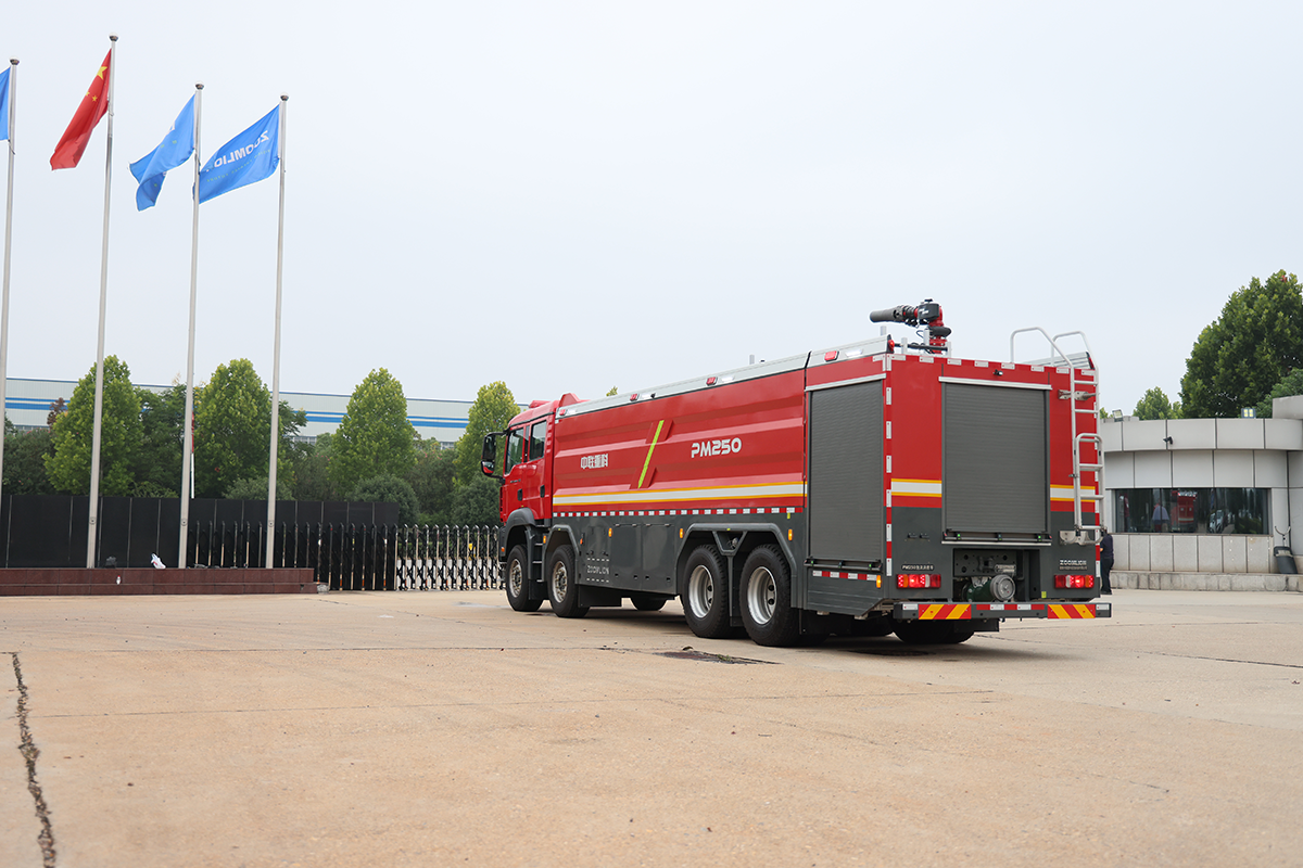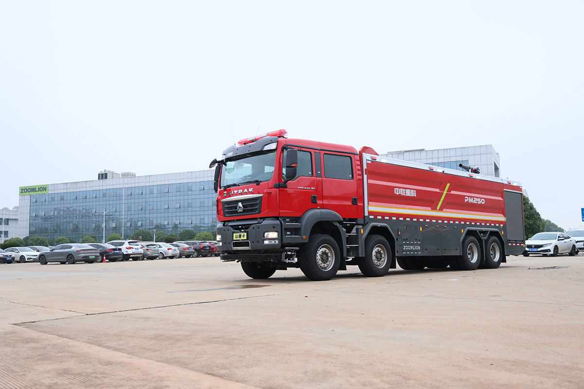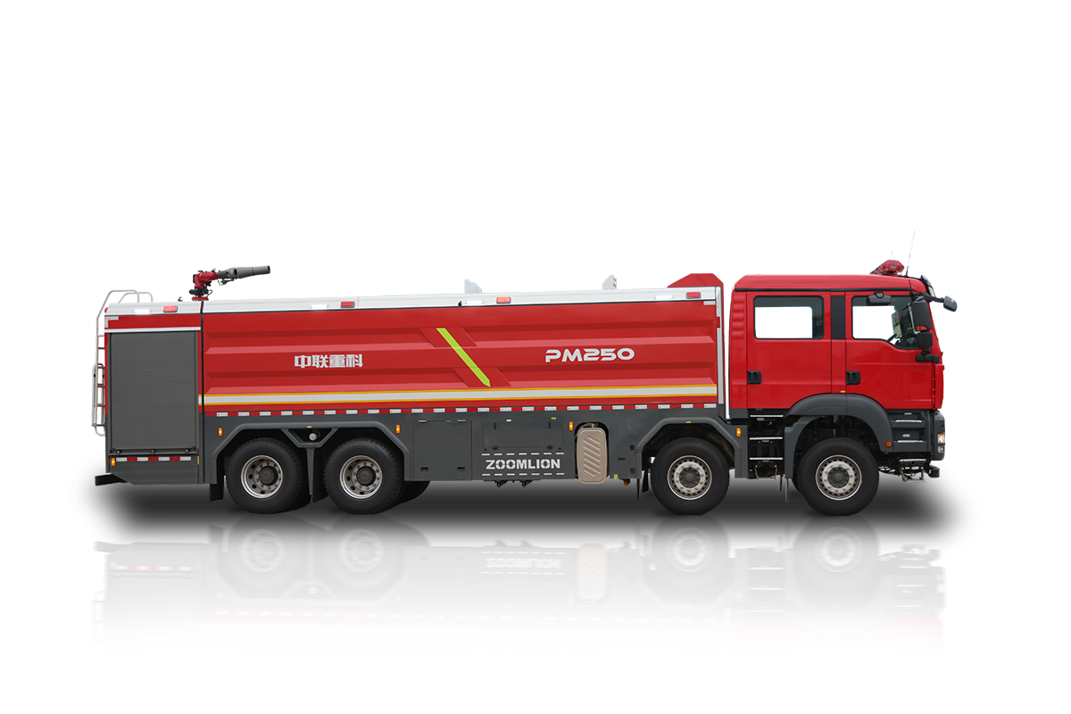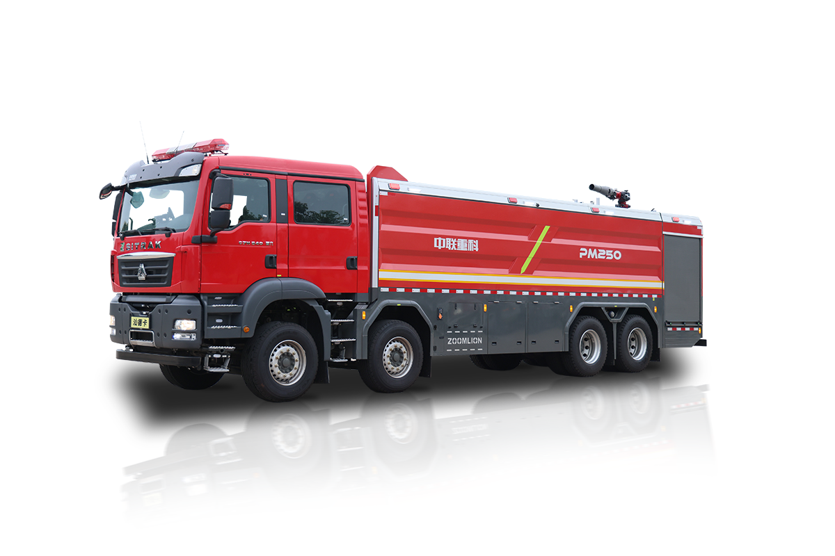 中联牌PM250A6型泡沫消防车,整车机动灵活,装备常规型B类泡沫系统,适合扑救工业与民用建筑A类火灾,亦可扑救石化,煤化,油库等B类火灾;全铝合金车身,自重轻,强度高,防腐蚀性能好,可随车携带多种抢险救援器材,是城市应急救援消防队与企业专职消防单位灭火救援的重要装备。