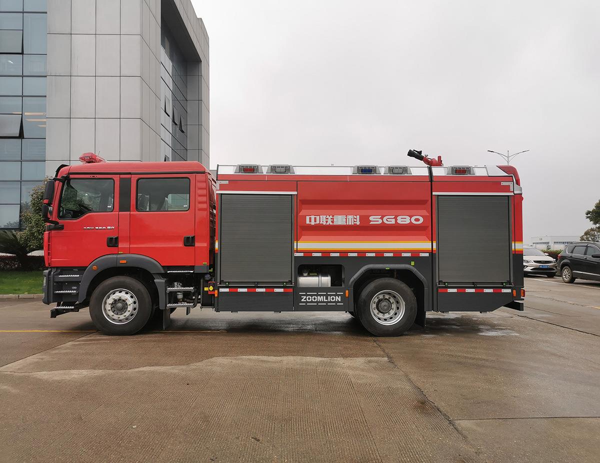 中联牌PM80泡沫/水罐消防车动力强劲,结构紧凑,机动性好。灭火剂容量大,泵、炮流量大,系统自动化程度高。管路布置合理,进、出水口位置和消防器材的摆放符合实战要求,灭火效率高,适于扑救工业与民用建筑A类火灾,也可扑救石化、煤化、油库等B类火灾,还可进行远距离、高层灭火或接力供水等。