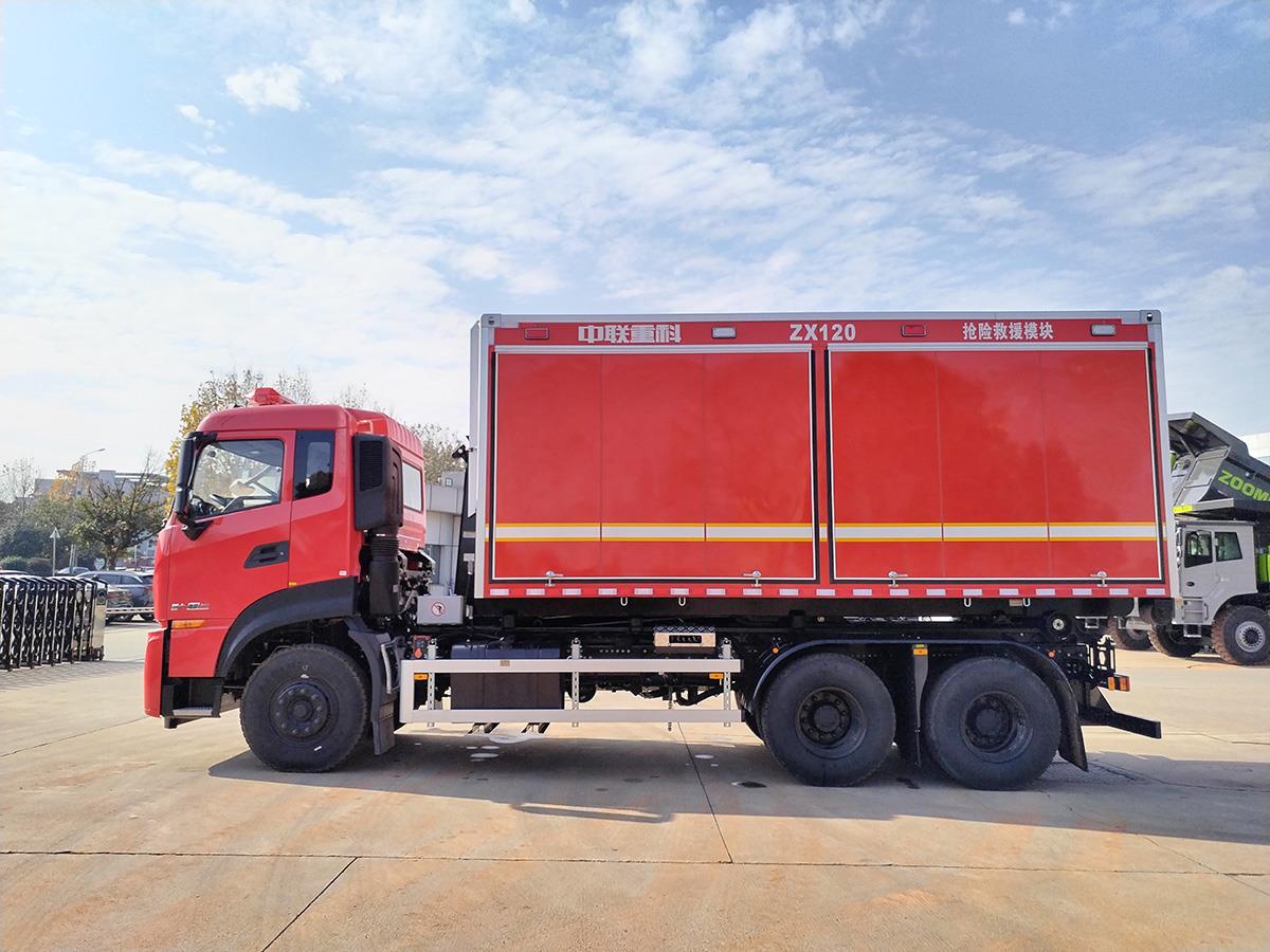中联重科自装卸式消防车,通过搭载不同的救援模块,满足各类救援快速反应的实际需求,能够**一时间将各类救援器材送达救援现场,提高救援效率。整车由底盘、厢体、拉臂钩系统、固定装置、电气系统和液压系统等构成。采用东风6×4二类底盘改装,拉臂钩系统与底盘大梁系统可靠固定,厢内安装高强度铝合金搭接骨架,便于根据实际需求调整,是跨区域大型救援设备的首选产品。
