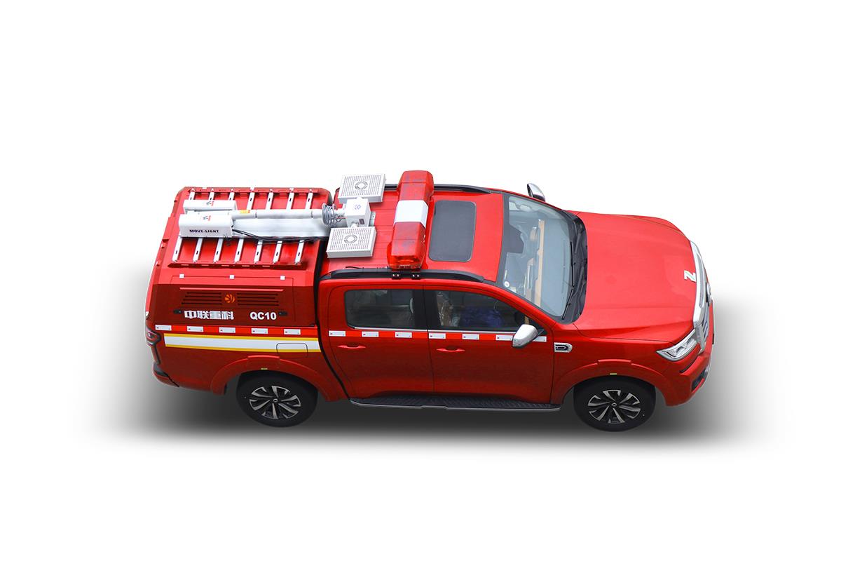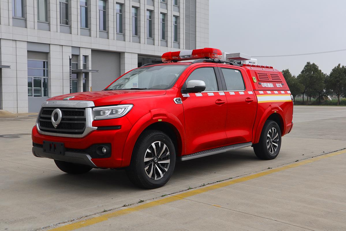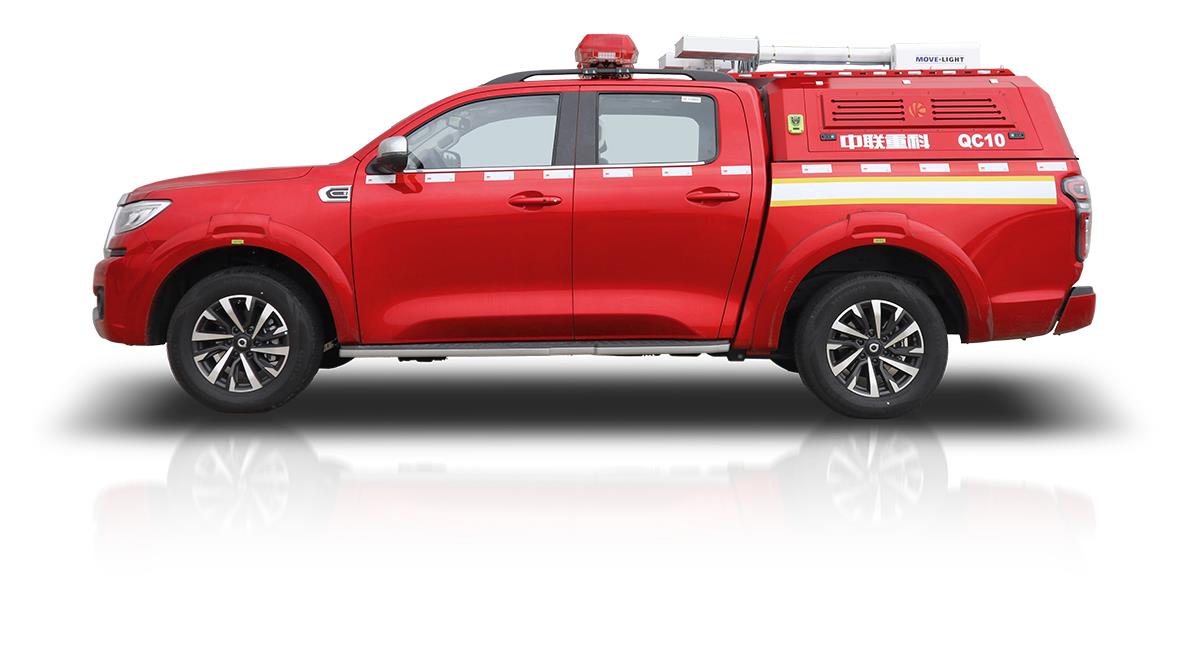 QC10A6型“平战接合型”前突皮卡车,在救援队伍行进时,起突前器材运输作用,用于搭载救援人员和消防器材快速到达事故现场。