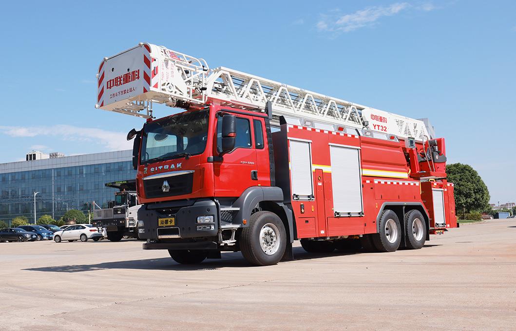 中联牌YT32型汕德卡底盘云梯消防车,结合国内外消防车的先进理念和消防实战创新设计而成,具备强大的灭火功能和高空救援能力。车辆搭载国内一线品牌汕德卡底盘,动力强劲,性能卓越,性价比极高。