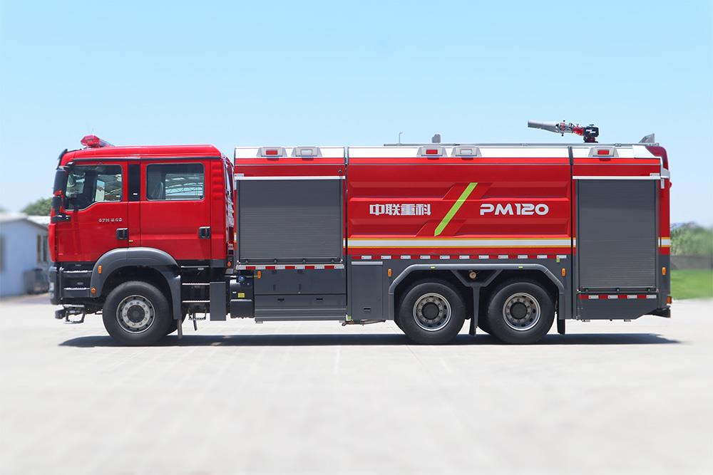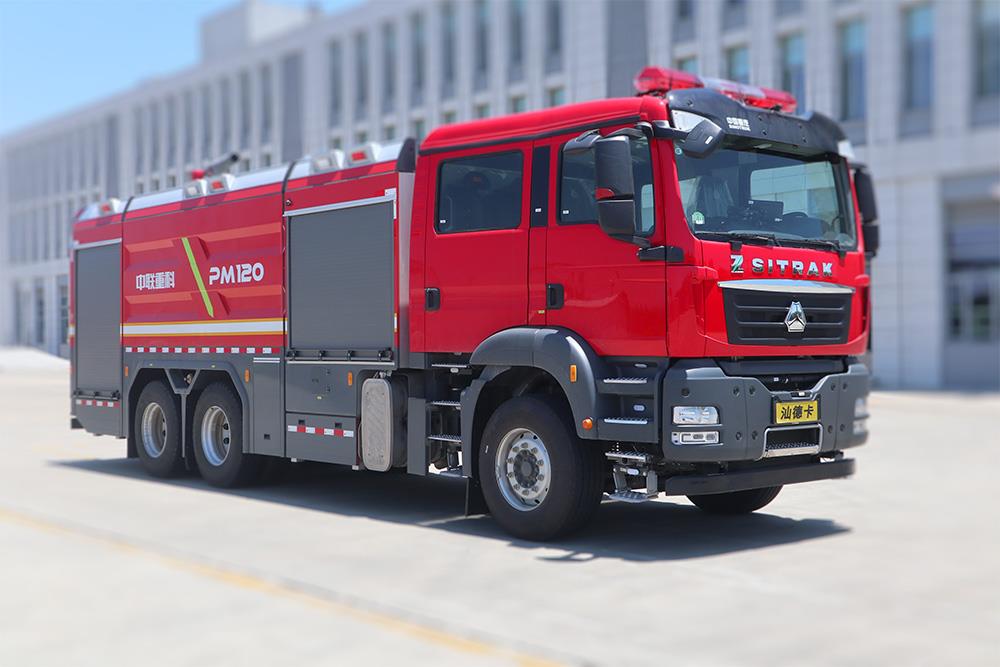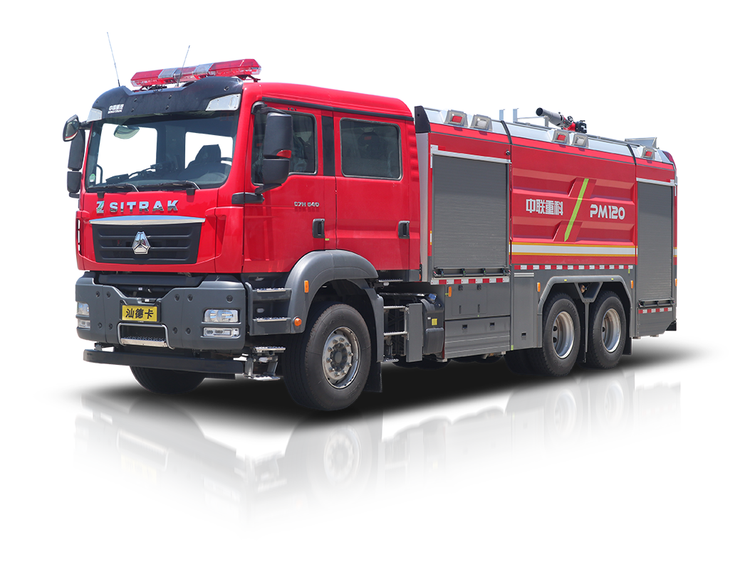 中联牌PM120型泡沫消防车,整车载液量大,装备常规型B类泡沫系统,适合扑救工业与民用建筑A类火灾,亦可扑救石化,煤化,油库等B类火灾;全铝合金车身,自重轻,强度高,防腐蚀性能好,可随车携带多种抢险救援器材。本车辆还可进行接力供水,是城市应急救援消防队与企业专职消防单位必备主力装备。