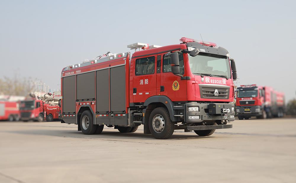 整车装备了先进的泡沫系统,采用集成式控制面板,具有操作方便快捷、灭火效率高、环保等特点;全铝合金车身,自重轻,强度高,防腐蚀性能好;器材箱采用专用铝合金层架板搭接而成,可上下自由调节,空间利用率高,器材配备多,取用方便;配置多项安全保护措施做到全方位防护,保证车辆安全可靠。整车装备消防泵炮、绞盘、升降照明系统,可携带破拆工具、救生器具等多类器材,是火灾、抗洪、车祸等各类灾害灭火救援的主力车型。