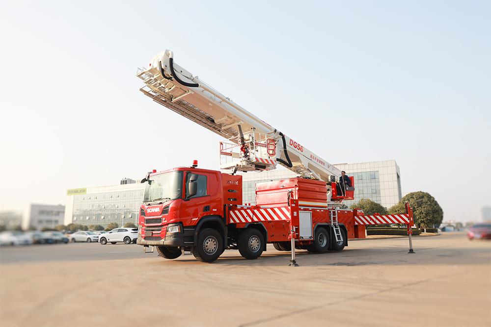 中联牌DG56A6型登高平台消防车,采用5+2双伸缩臂结构,配置大流量水力系统及智能控制系统,整车灭火能力及高空救援能力强悍,动作平稳快捷,操作简便。适用于城镇、港口、工矿企业高层建筑以及石油、化工、油罐、仓库等大型建筑灭火及救援。