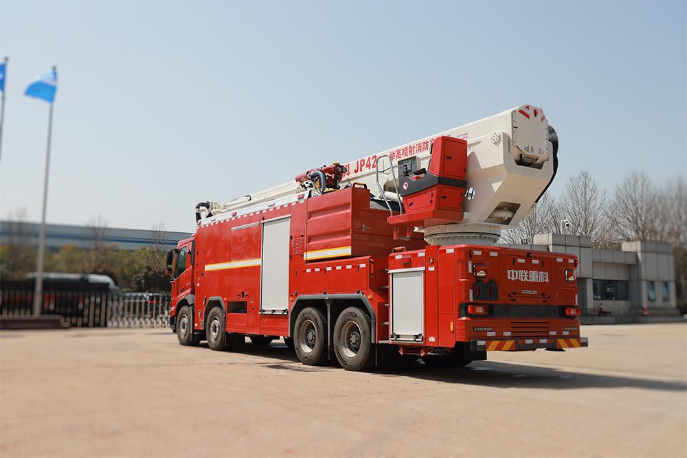 中联重科42米三相射流举高喷射消防车是集高喷、水罐、泡沫、干粉多功能于一体的新型高效灭火装备。