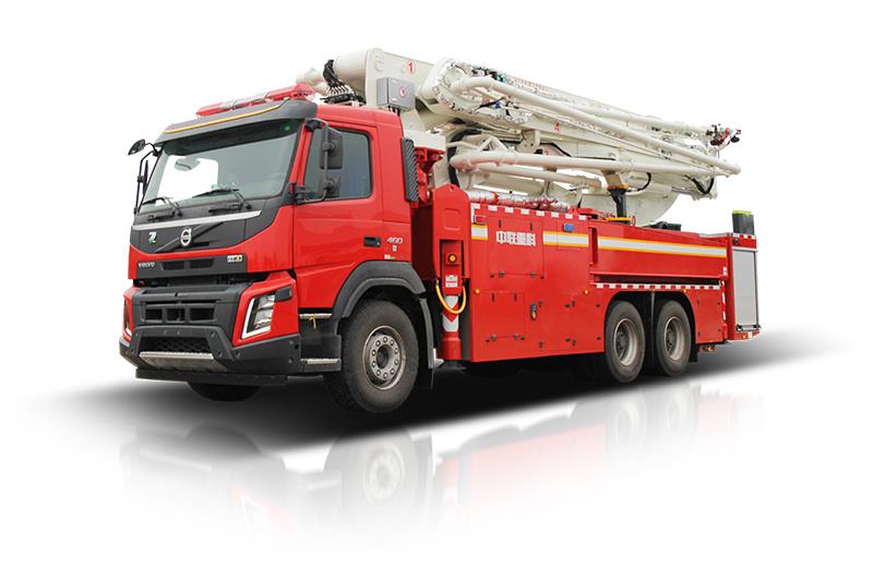 中联重科JP40型大跨距举高喷射消防车,结合国内外消防车的先进理念和消防实战创新设计而成,具备强大的灭火功能,整车性能优越,快速高效,操作性、安全性及智能化控制水平处于国际先进水平。