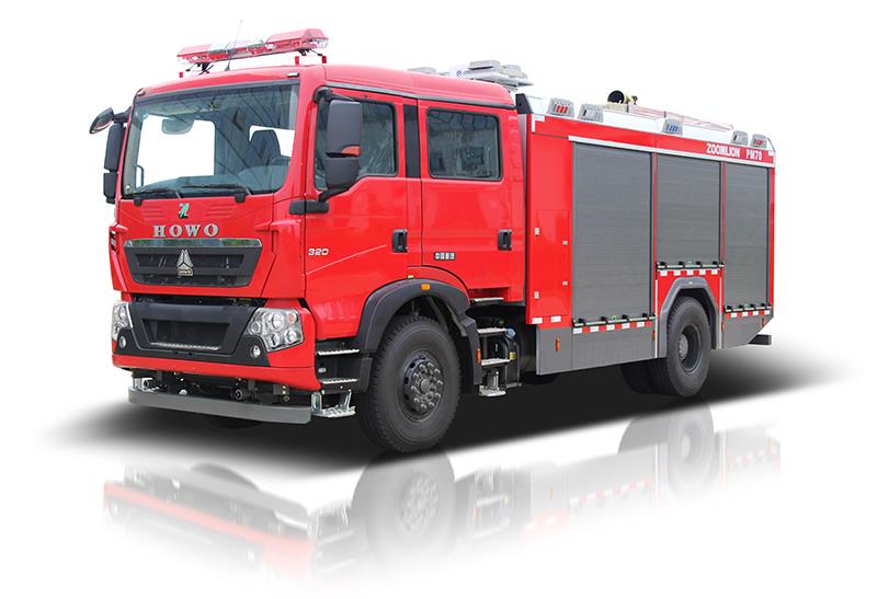 ZLF5201GXFPM70/ZLF5201GXFSG70是一款结构合理,性能先进,功能齐全,操作方便,灭火效率高,自动化程度高,环境适应性好的泡沫/水罐消防车。本车选用中国重型汽车集团有限公司的豪沃牌消防车专用底盘、装备美国瓦特尔斯消防泵和埃尔克电控消防炮,还加装了升降照明装置,软管卷盘,底盘自保喷淋,取力器散热,泵房加热保暖,备胎自动升降,消防车智能控制平台等。本车高低温,高原和电磁兼容性能优良,全自动的B类泡沫和集成控制系统,使得整车在操作性、安全性、环境适应性及智能化控制水平方面国内领先。不锈钢罐体、重防腐涂装,全铝合金车身和骨架,防腐蚀性能好。配置有针对各种器材的专用夹具,空间利用率高,器材固定牢固,取放方便。