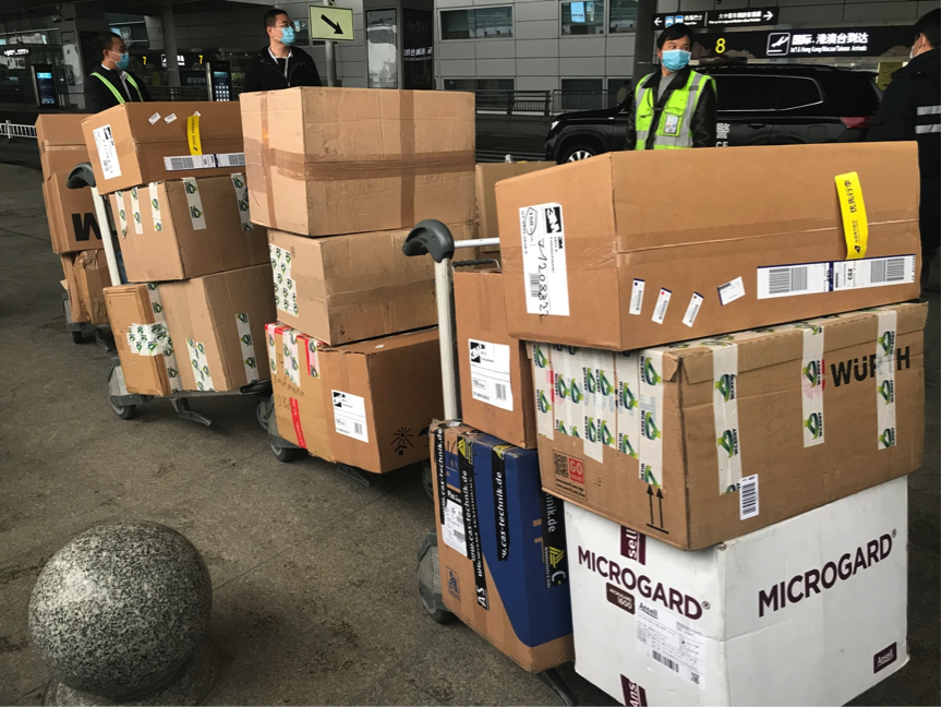 △中联重科海外员工在法兰克福机场准备发送防护物资