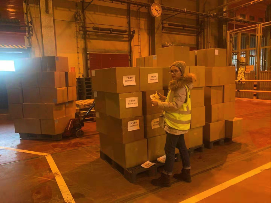 中联重科白俄罗斯基地员工在抢购到医疗防护物资后,本应从明斯克国际机场发出,但考虑到当地机场运力紧张,为了尽早将物资发往中国,又来了一次千里奔袭,冒着鹅毛大雪驱车将物资跨国运到俄罗斯的莫斯科机场。打包、托运、直到医用口罩清点登机后,中联重科白俄罗斯基地员工才放心离开。