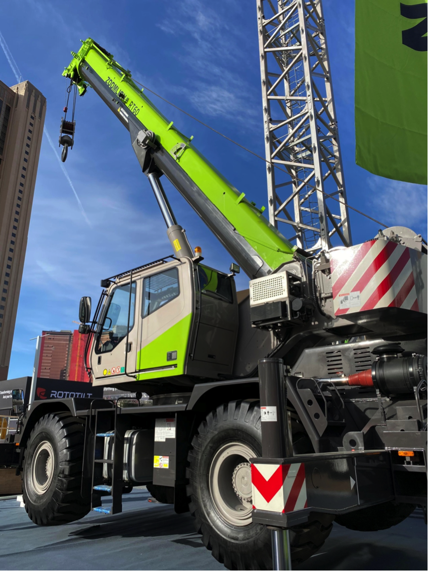 中联重科亮相本次美国展的两款工程起重机械分别为ZCC2600履带式起重机和RT60越野轮胎起重机。