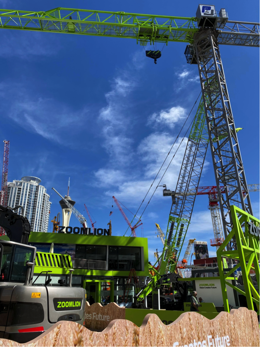 耸立在拉斯维加斯展场的极光绿塔机是中联重科热销的新款T8030-25塔机。基于德国JOST技术、结合美国标准,中联重科研发了T8030-25塔机。经过四年的市场验证和改进,中联重科和代理商P&J Arcomet公司共同为北美市场设计了性能更强大、品质更可靠的新款T8030-25塔机。