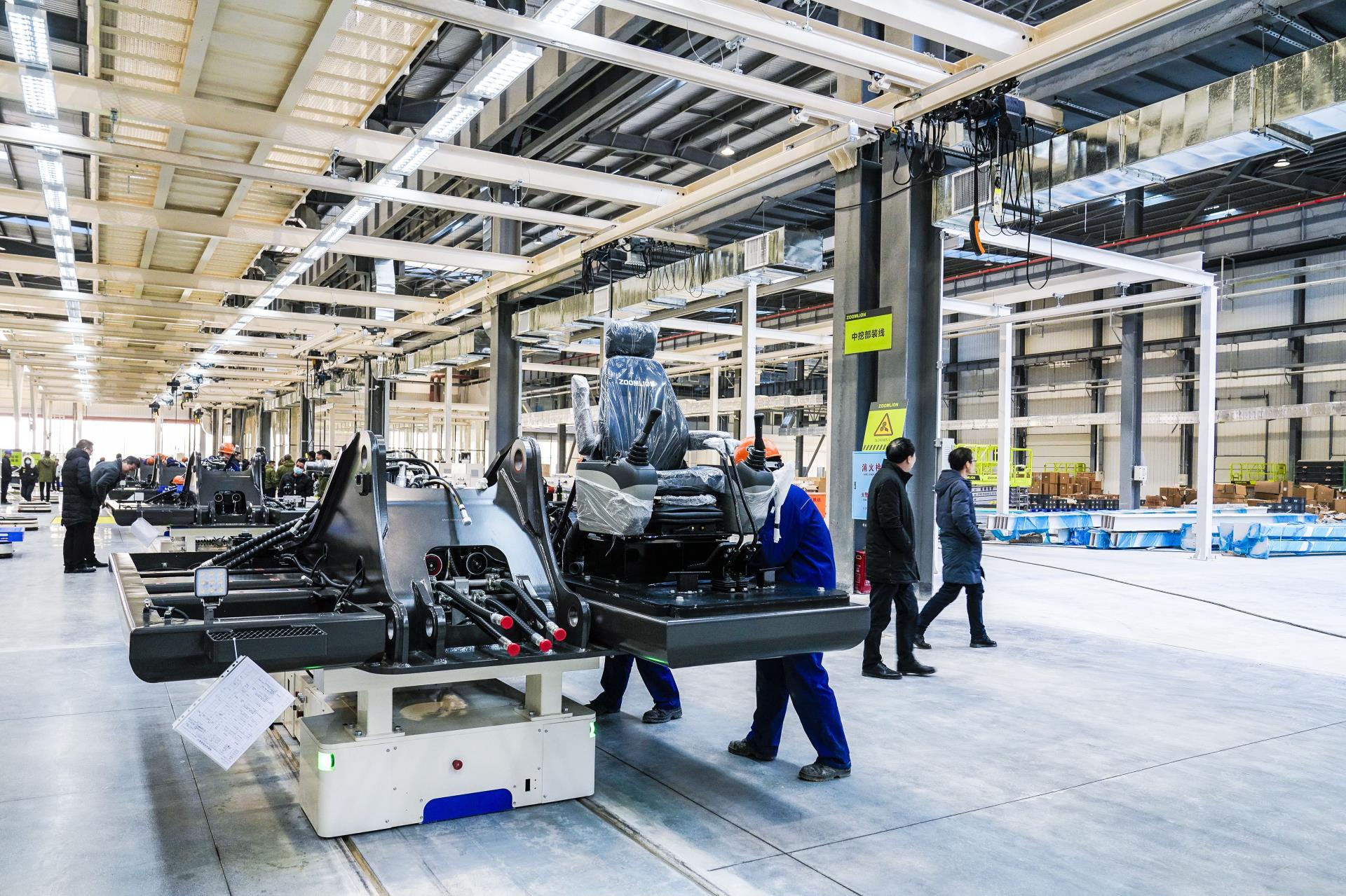 两台中大挖产品由中联智慧产业城首开区挖掘机械园区中大挖装智能配车间生产制造。该车间面积为36000平方米,生产覆盖13.5吨到48吨的挖掘机产品